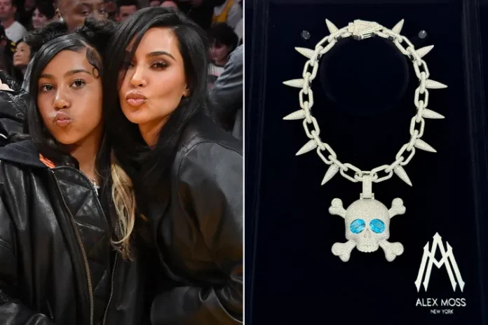 North West was seen wearing the massive piece in a series of social media posts. The necklace features intricate diamond-encrusted skull motifs, reflecting the edgy, gothic-chic aesthetic that North has been gravitating toward in her public appearances and TikTok content.