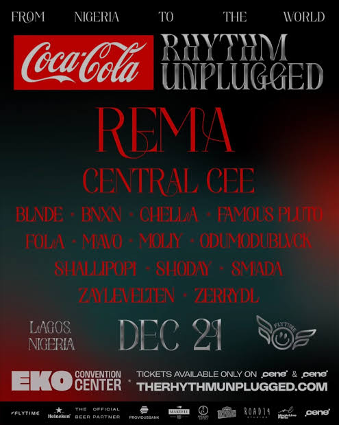 In an update published by The Sun Nigeria, Flytime’s Rhythm Unplugged 2025 is being marketed as a major Lagos concert moment, with Rema and Central Cee drawing the loudest pre-show chatter.